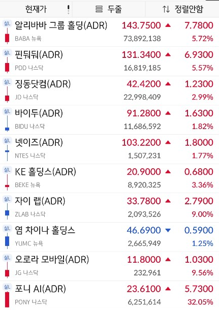 전체적인 중국기업 주식들의 흐름이 좋은 모습입니다.